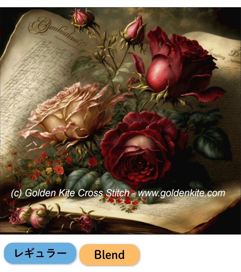 商品名:クロスステッチキット・図案 Book and Roses[レギュラー)][Blend] - Golden Kite(GK)