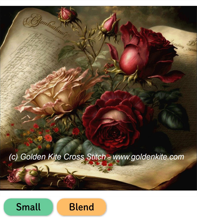 クロスステッチキット・図案 Book and Roses(small) [small][Blend] - Golden Kite(GK) [118-1-100046]