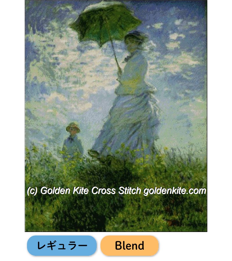 商品名:クロスステッチキット・図案 The Stroll, Camille Monet and Her Son (Claude Monet) モネ[レギュラー)][Blend] - Golden Kite(GK)