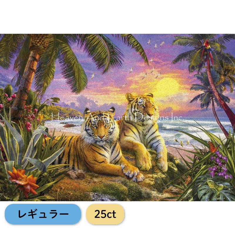 クロスステッチキット・図案 Tropical Sunset Tigers [レギュラー][25ct] - Heaven and Earth Designs(HAED)