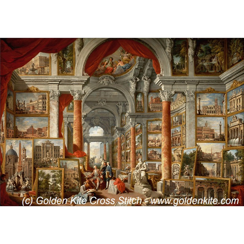 クロスステッチキット・図案 Picture Gallery with Views of Modern Rome 2 (Giovanni Paolo Pannini) 現代ローマの風景画ギャラリー 2- Golden Kite(GK)