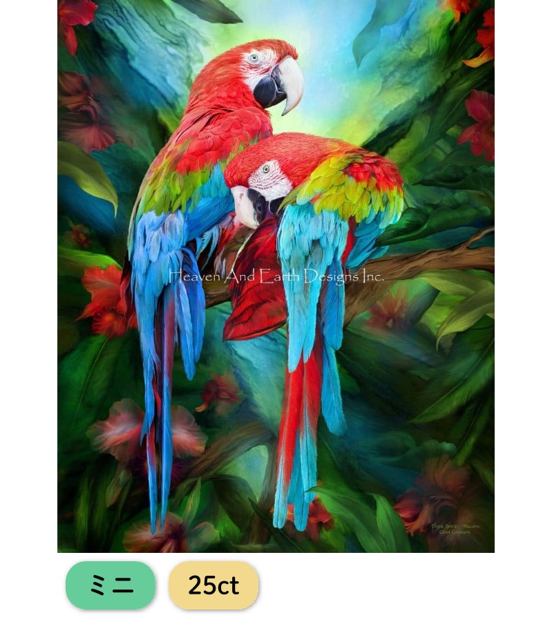 商品名:クロスステッチキット・図案 Mini Tropic Spirits Macaws [ミニ][25ct] - Heaven and Earth Designs(HAED)