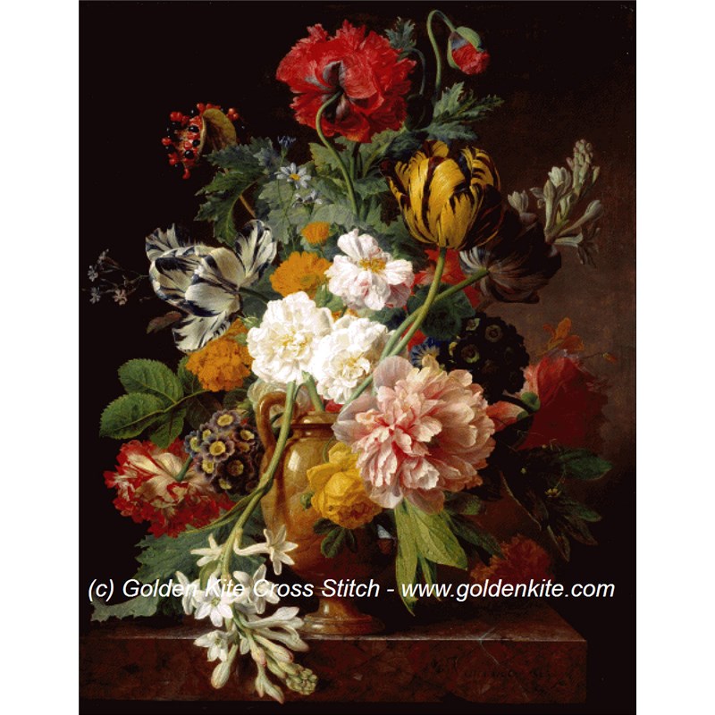 クロスステッチキット・図案 Vase of Flowers, Grapes and Peaches (Jan Frans van Dael) - Golden Kite(GK)