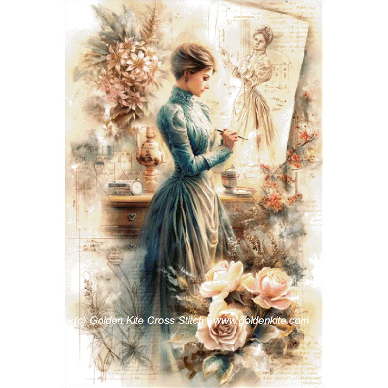 クロスステッチキット・図案 Stitching Time A Floral Sketch- Golden Kite(GK) [118-1-100225]