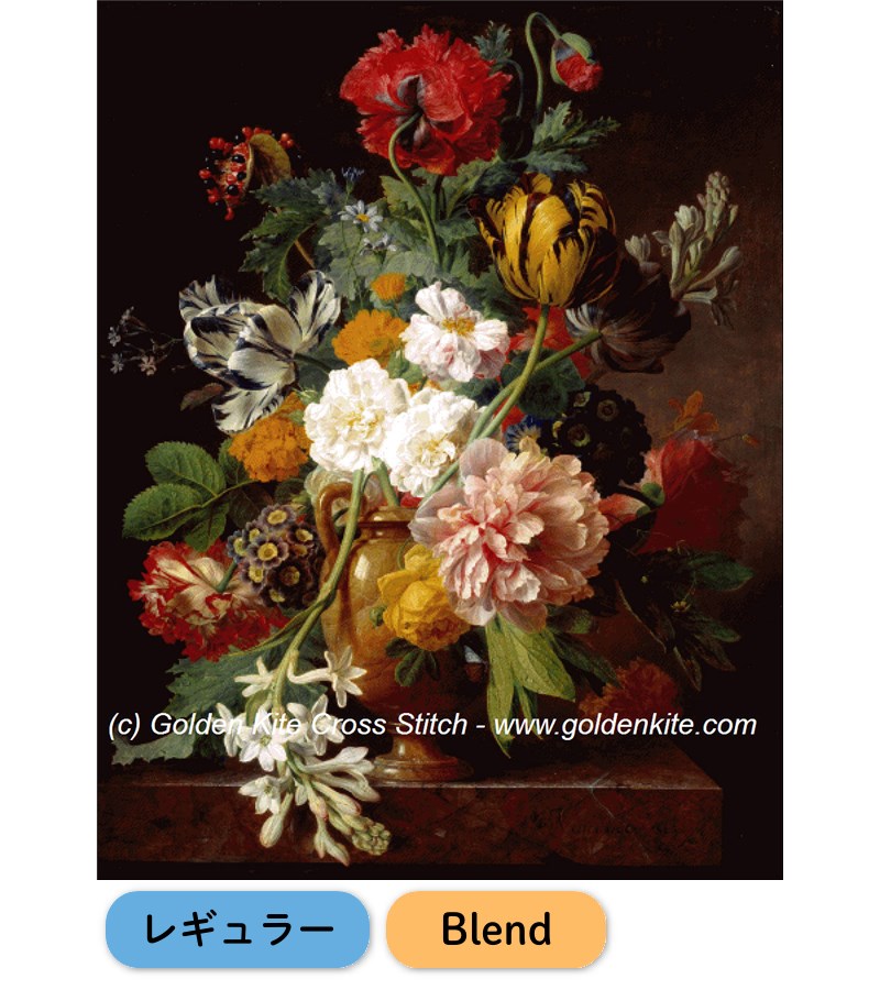 クロスステッチキット・図案 [レギュラー][Blend] Vase of Flowers, Grapes and Peaches (Jan Frans van Dael) 18ct- Golden Kite(GK)