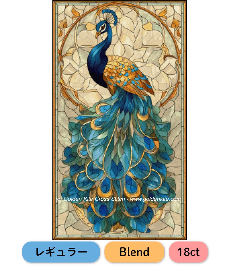 商品名:クロスステッチキット・図案 [レギュラー][Blend] Stained Glass Peacock 18ct- Golden Kite(GK)#6154