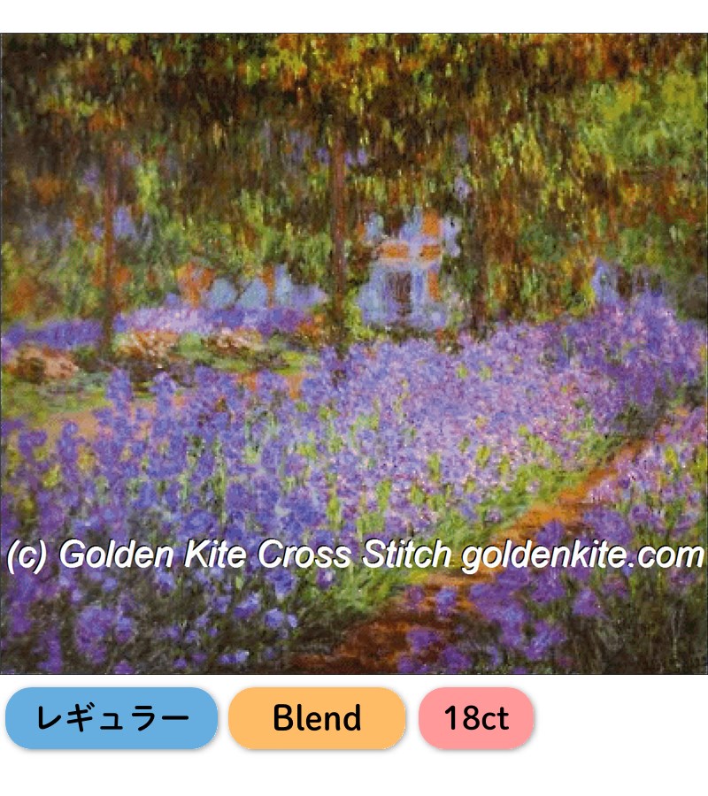 商品名:クロスステッチキット・図案 [レギュラー][Blend] [18ct] Monet's Garden, the Irises (Claude Monet) - Golden Kite(GK) #1416