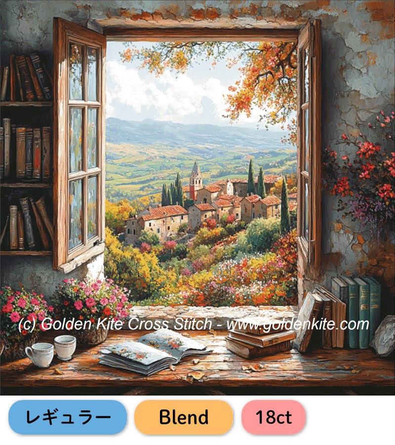 本作品は**Blend(ブレンド)**仕様で、複数の糸を組み合わせることで、より滑らかな色彩の変化と奥行きのある風景表現を楽しめます。Golden Kiteならではの緻密な図案により、まるで絵本の一場面のような美しい作品に仕上がります。風景やインテリアの雰囲気を楽しみたい方におすすめのクロスステッチデザインです。